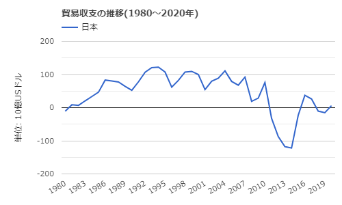 貿易収支の推移(1980年~2020年), 世界経済のネタ帳.